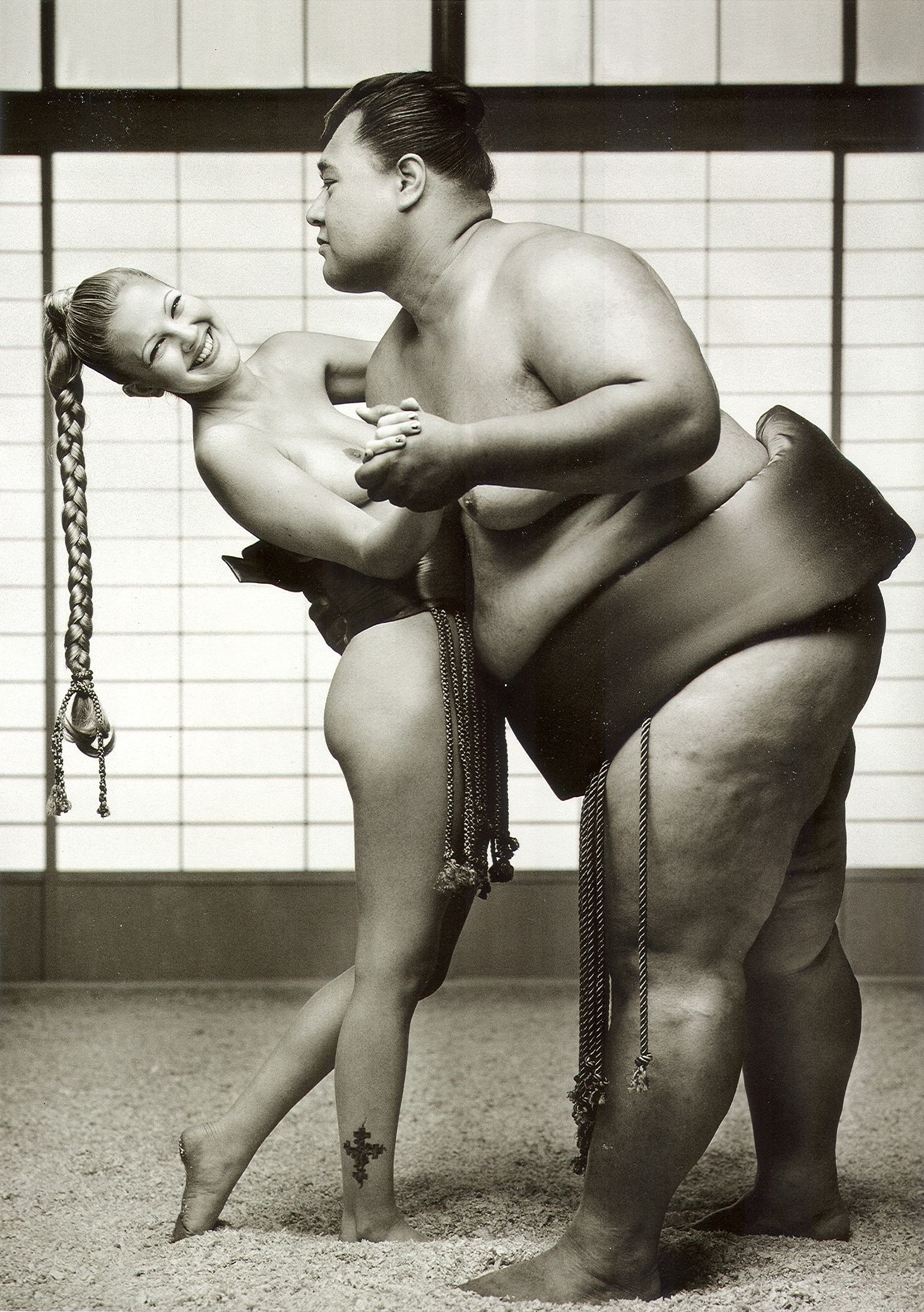 Drew Barrymore desnuda luchando con sumo