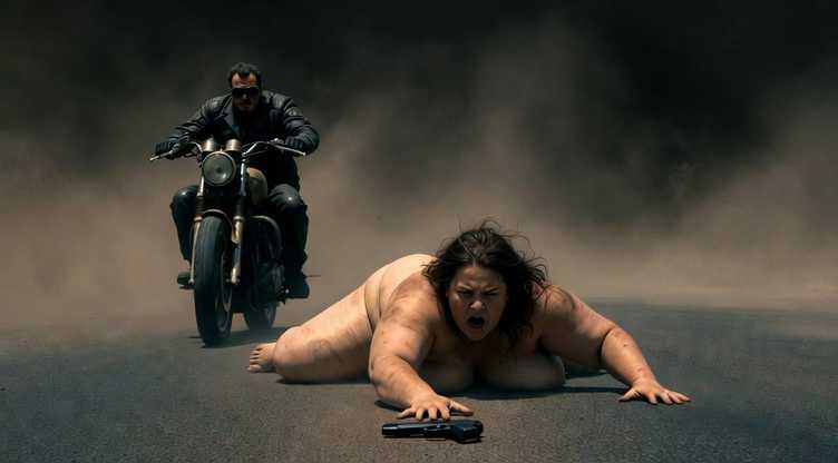 La cuarta entrega de El guerrero del desierto perdido empuja la saga hacia un territorio deliberadamente grotesco, casi carnavalesco. En esta ocasión, Maddy —esa figura improbable, corpulenta y desnuda como una diosa bárbara arrancada de una pesadilla posapocalíptica— avanza entre dunas y chatarra oxidada para enfrentarse al ejército motorizado de los Hell Divers.